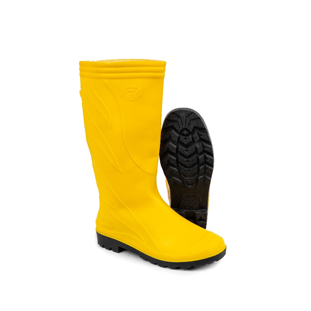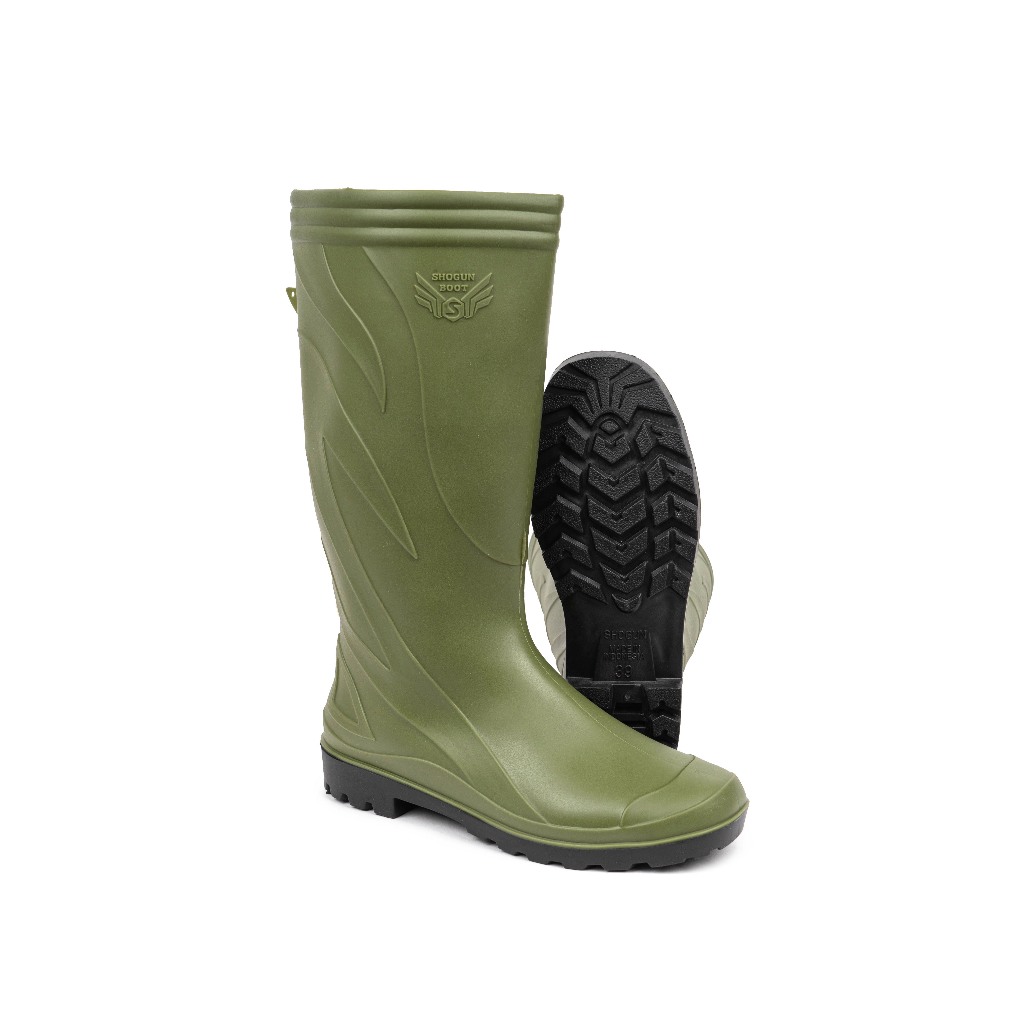 Sepatu Boot Tinggi SHOGUN TARO Hijau Kuning Boots Karet Lokal Lentur Anti Air & Slip Konstruksi