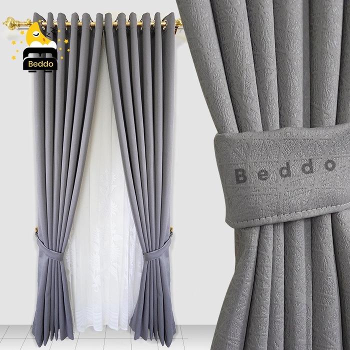 SATU SETT GORDEN BLACKOUT IMPORT SAFRON II GORDEN PINTU DAN JENDELA JENDELA KAIN MAWAR KAIN SILVER TALI BENANG - HITAM, TINGGI 150CM