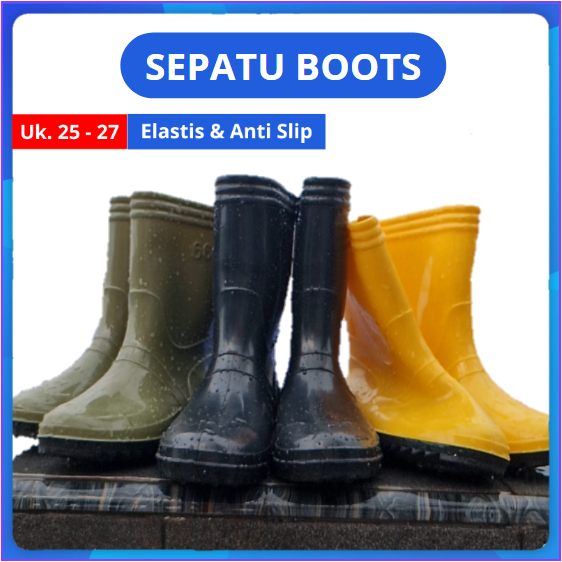 Sepatu Boots Bahan PCV Premium Anti Air & Anti Licin 3 Warna
