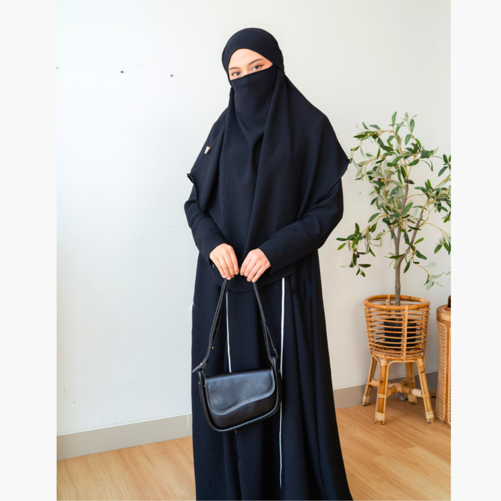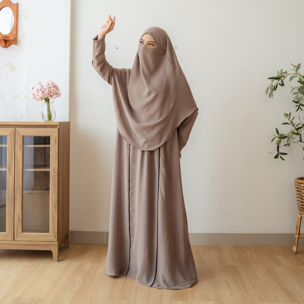 Faheera Abaya Set French Khimar Wanita Gamis Syari Umroh (Abaya List set Hijab) By Umnawear