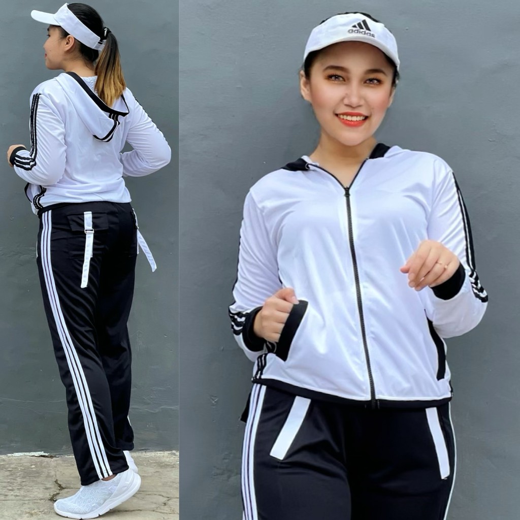 READYBaju Senam Setelan Aerobic Zumba Lapangan Cycling Hijab Muslimah Panjang Training Putih Hitam