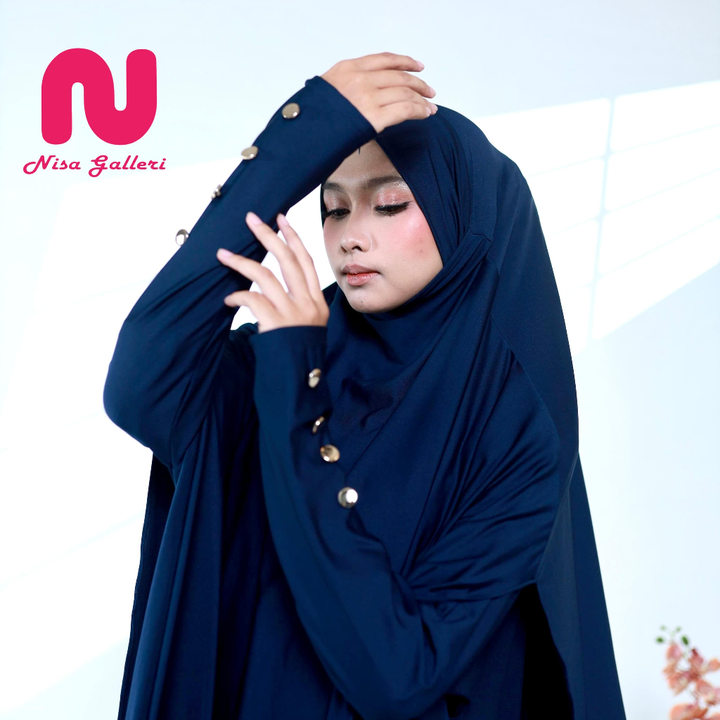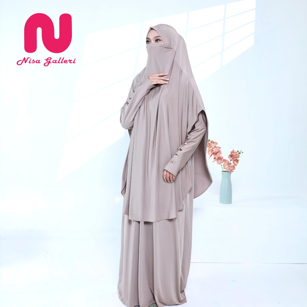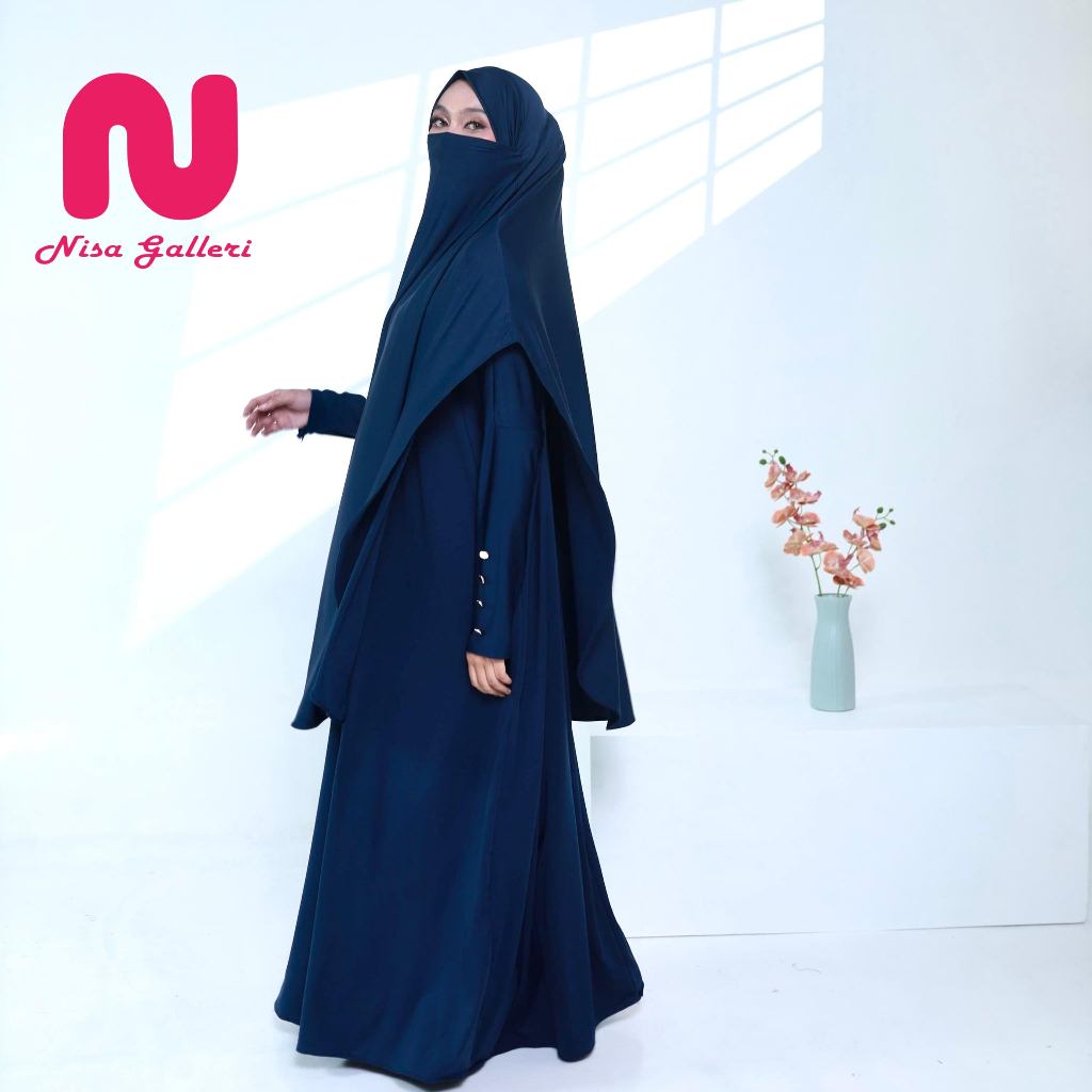NISA GALLERI - Gamis Syari Abaya Set French Khimar Haji dan Umroh kajian 2in1 Bahan Jersey tangan resleting