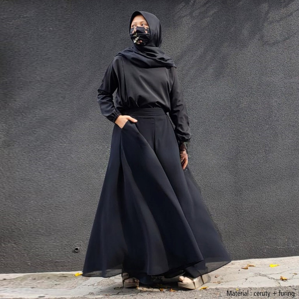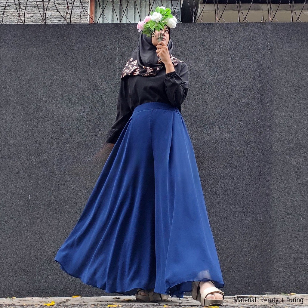 Celana Kulot Panjang Payung Lebar Wanita Muslimah Polos Palazzo Sifon Chiffon Ceruty Pants Almira