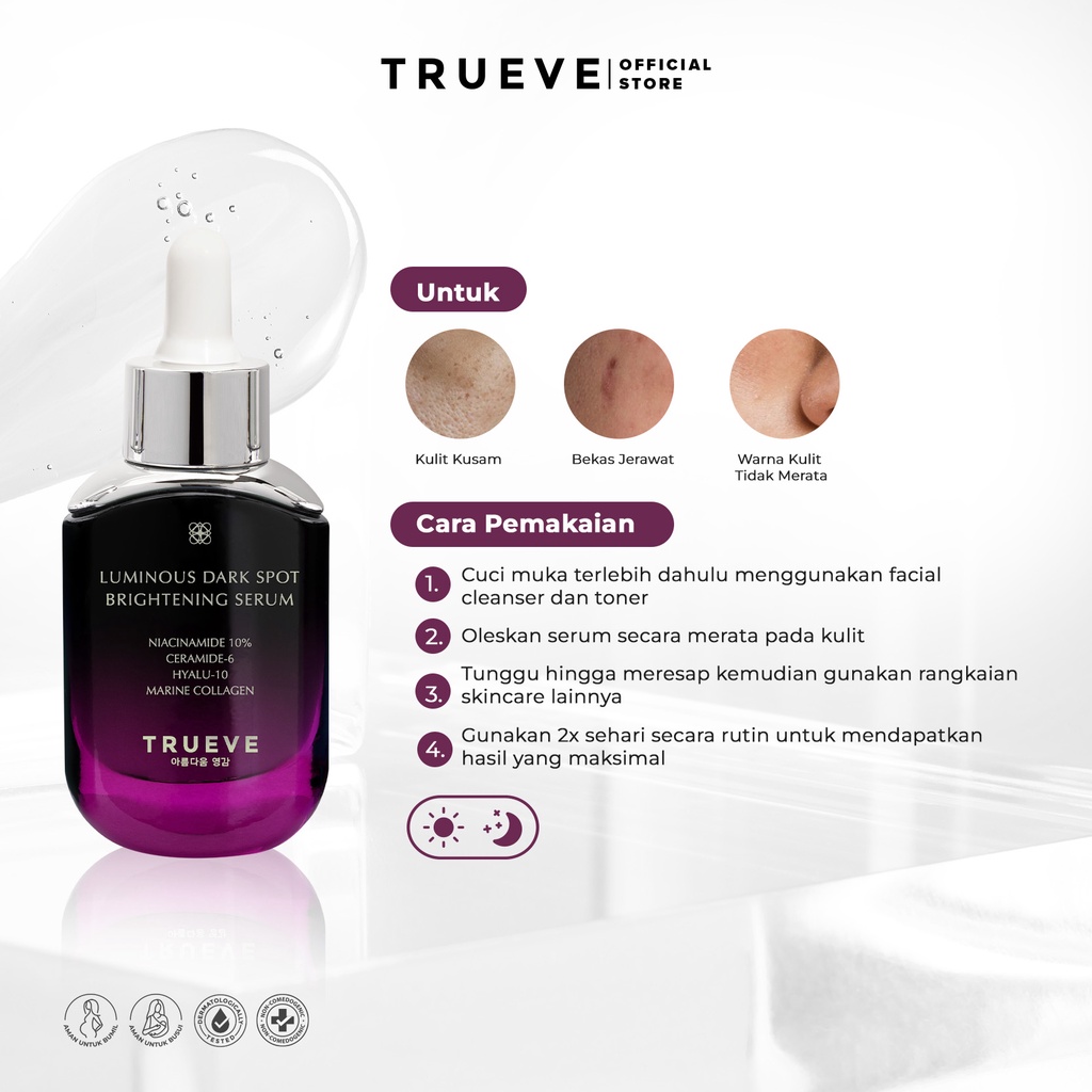 TRUEVE Luminous Dark Spot Brightening Serum - Serum Pencerah Muka dan Penghilang Flek Hitam Menjaga Skin Barrier Cocok U