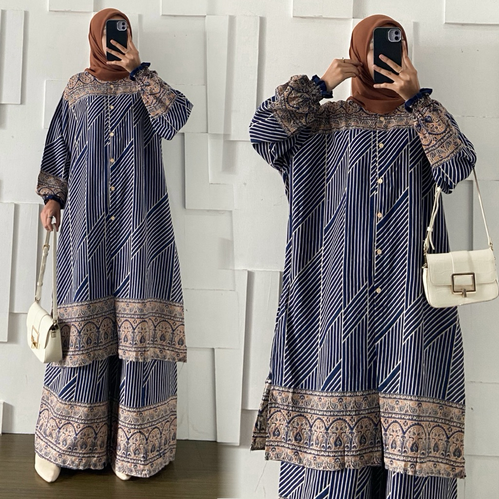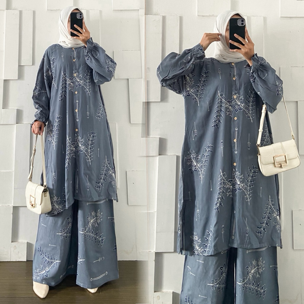 Maura Set Long Tunik dan Celana Kulot LD 130cm Jumbo Bahan Rayon Adem Busui By Kirania