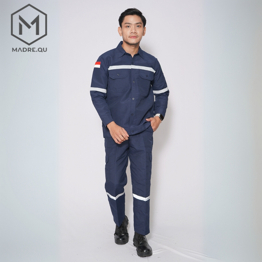 Wearpack Safety Setelan Lengan Panjang Scotlight Biru Navy Baju Kerja Lapangan Proyek Pabrik Bengkel