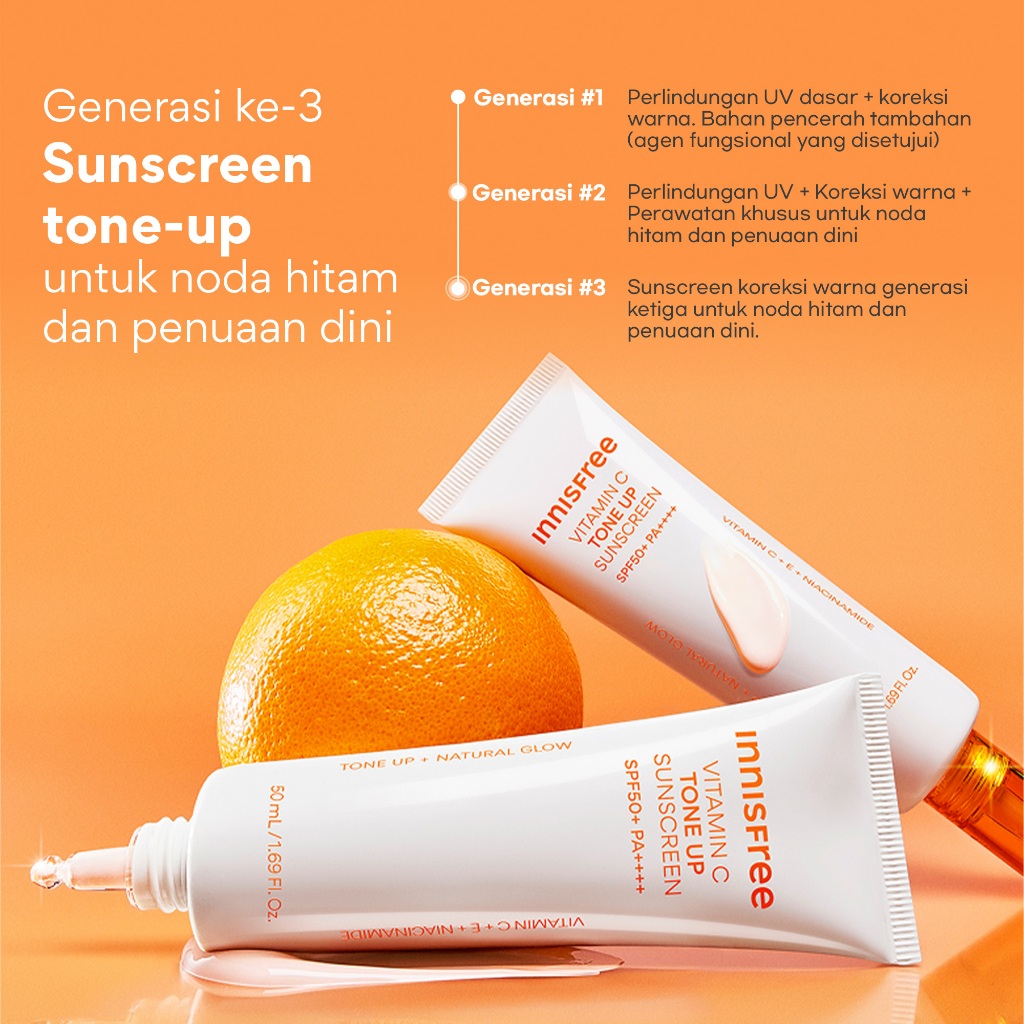 Innisfree Vitamin C Tone Up Sunscreen SPF50+ PA++++ 50ml - Tone Up Sunscreen Mencerahkan Wajah