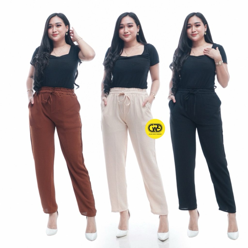 Celana Baggy Pant Crinkle Premium AirFlow 3 Pcs 100 Ribu - el Panjang, Tali Pinggang Bisa Diatur