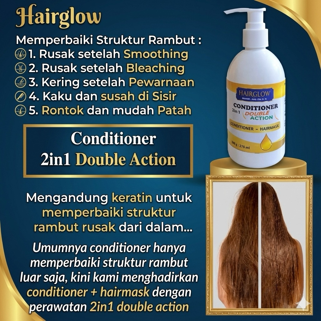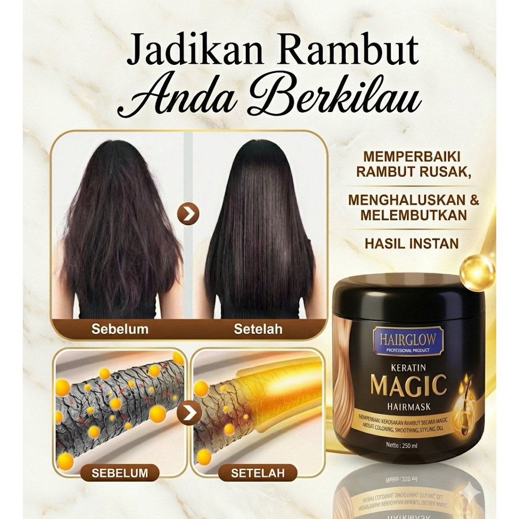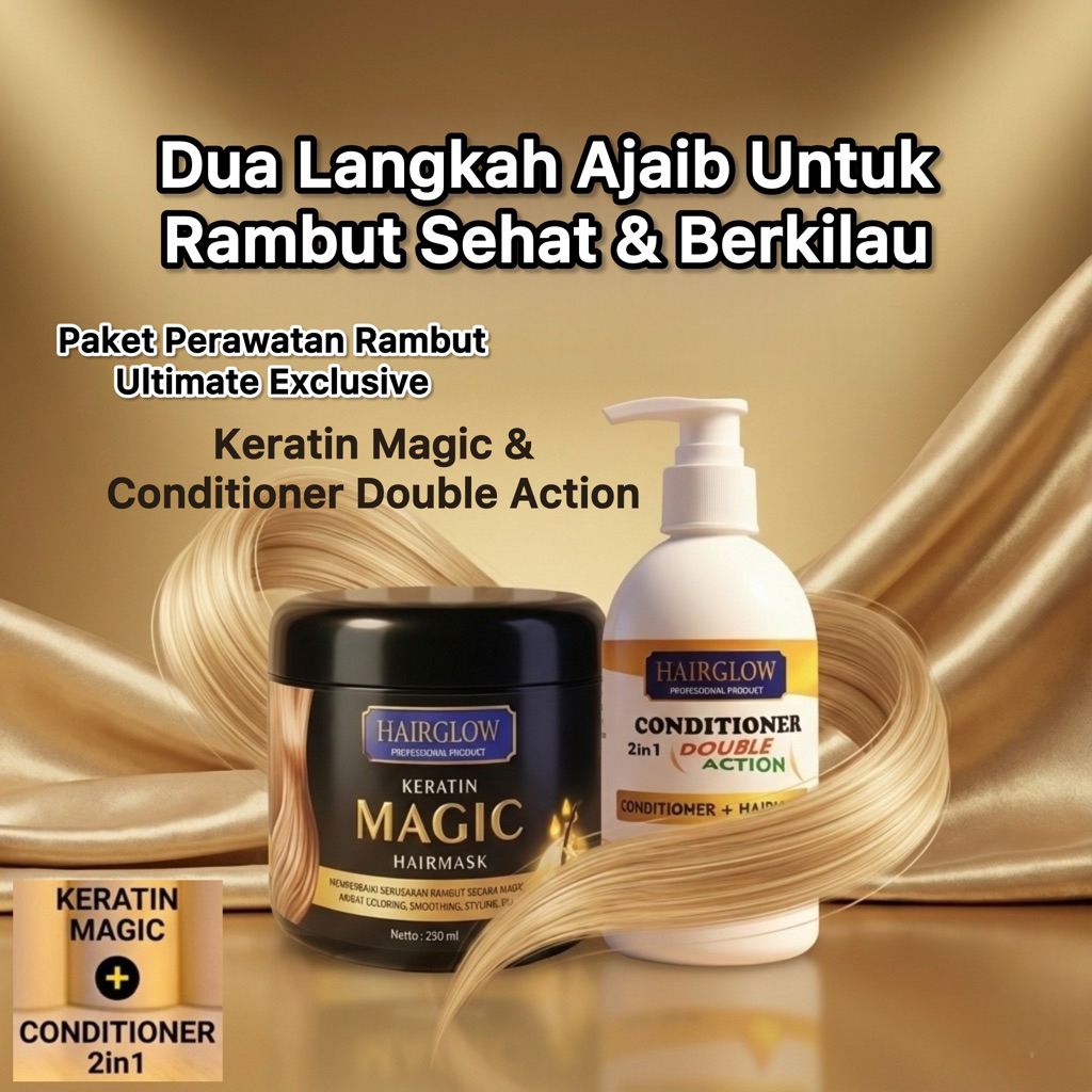 Hairglow - Promo Paket Hair Mask Keratin + Conditioner 2In1 - Obat Rambut Rusak Parah