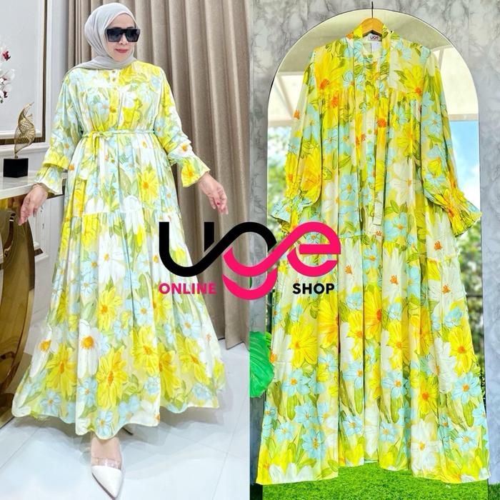 Gamis Rosella By Uge Gamis Lengan Balon Rayon Premium - Asylla, Size L = Ld 100Cm Panjang 130Cm