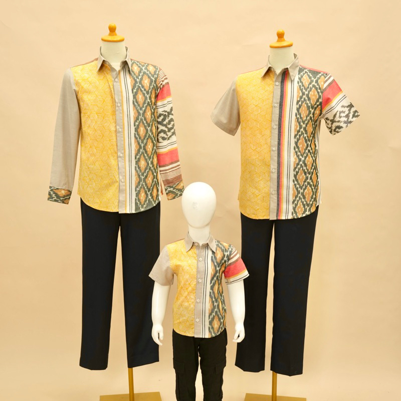 Set Keluarga/Seragam Keluarga Batik dan Tenun 1136 Cream