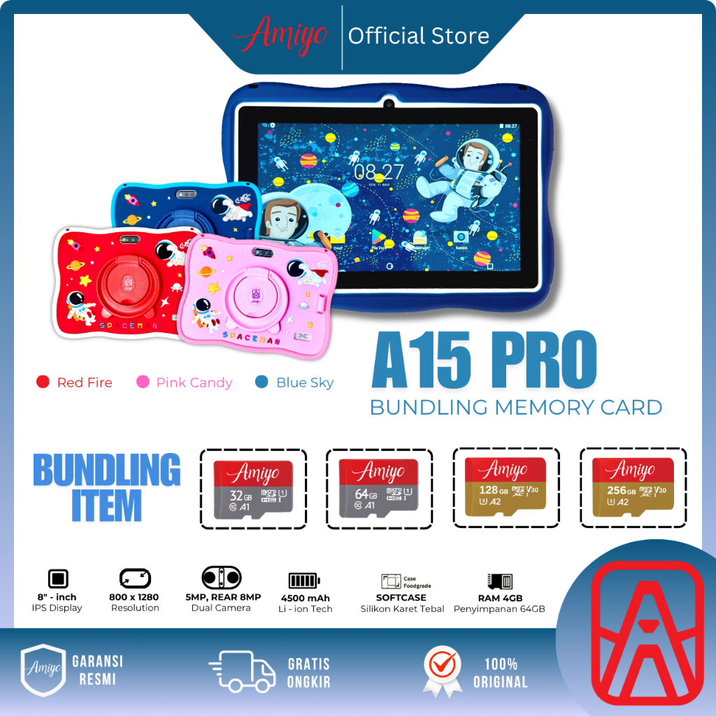 Amiyo Tab Study Kids A15Pro Bundling +Sd Card 32Gb/64Gb/128Gb/256Gb Wifi/Hotspot Only Ips Screen