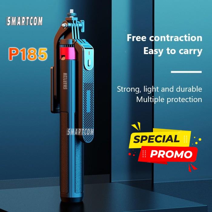 SMARTCOM - Tripod Bluetooth P185 Tongsis Selfie Stick Remote Control Hand Stabilizer HP 360 derajat