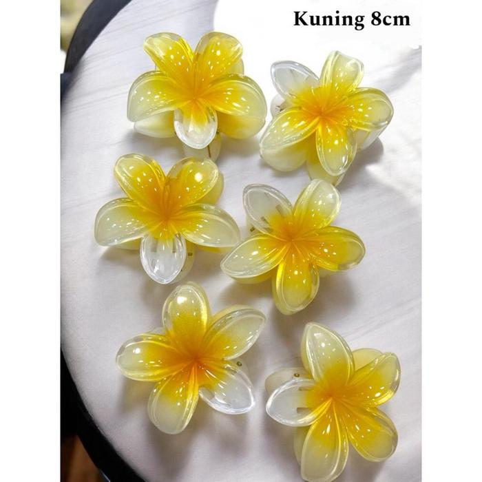 [FS] 12pcs Jepit Bunga Kamboja 8CM Jepit Rambut Wanita Bahan Akrilik Gaya Korea Import - KUNING 8CM