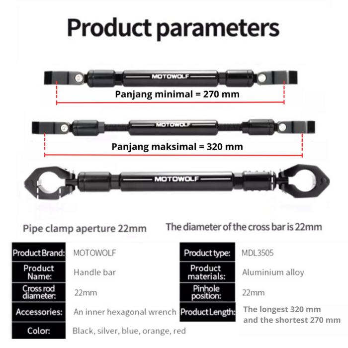 Stabilizer Stang Motor Breket MOTOWOLF Aksesoris Stang Motorcycle Alloy