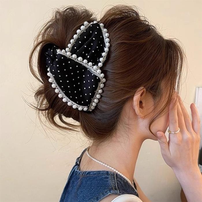 Caliloops Jepit Jedai Rambut Butterfly Mutiara Polkadot Wanita Korean Style Vendi - Hitam