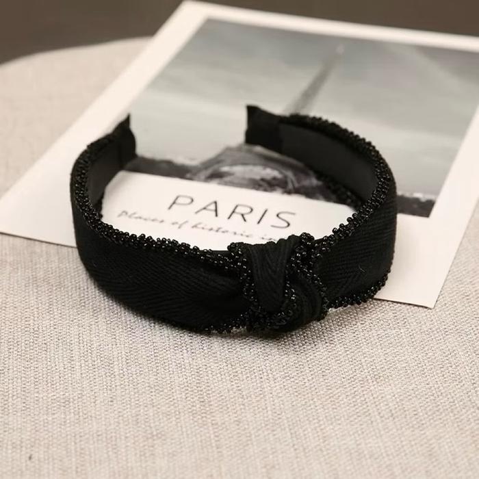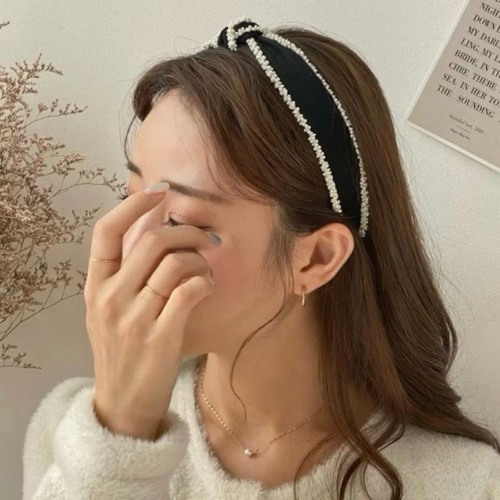 OUNIE Aesthetic Korean Head Band / Bando Estetik Simpul Mutiara Elegan Luxury / Banfulus Headband - Double Black