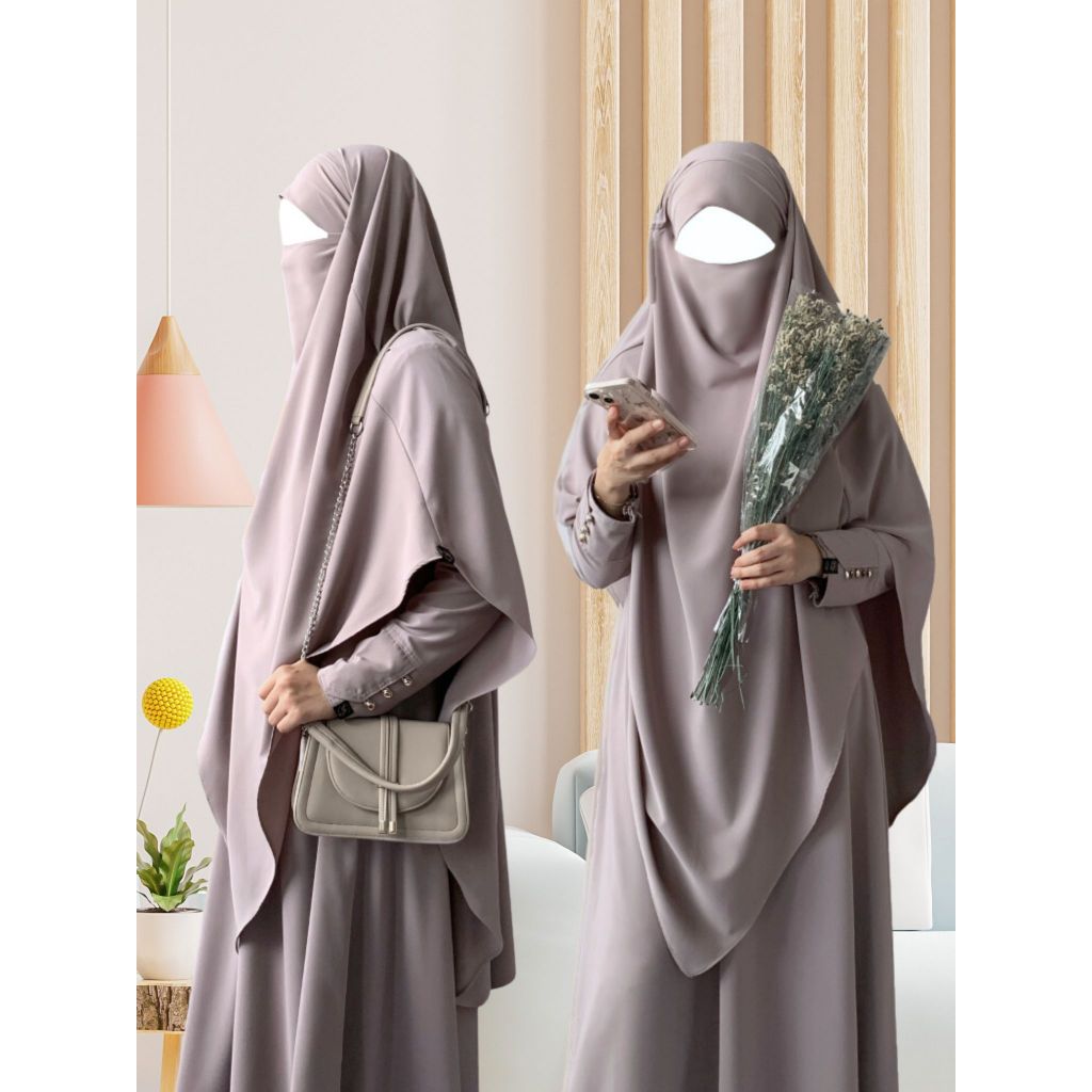 Zura Abaya Set by Mahiza – Gamis Syar'i + Khimar French | Anti UV, Cocok Umroh & Haji