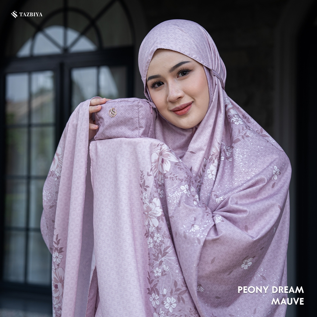 [New] Tazbiya Mukena Travel Premium Mini Pouch Soft Matte 2In1 Peony Dream Series | Mukena Travel Halus Lembut Anti Kusut