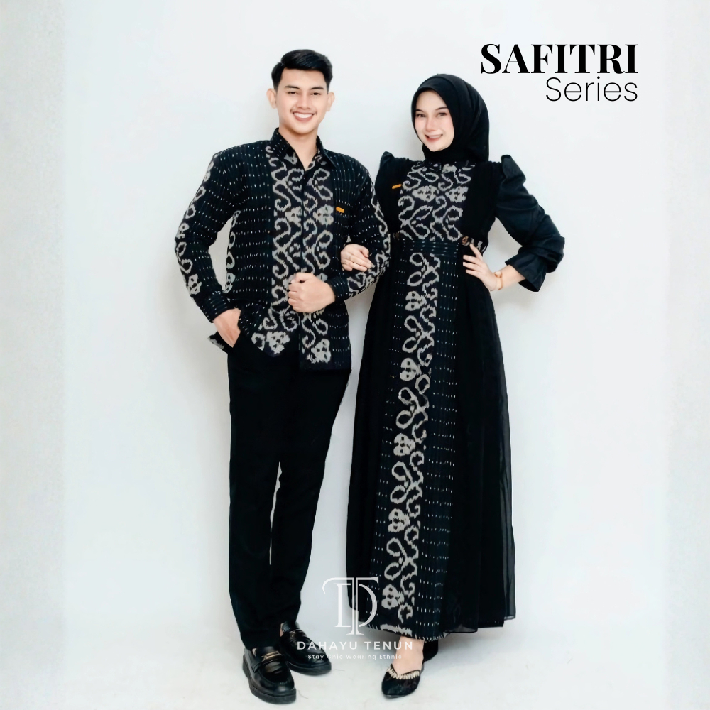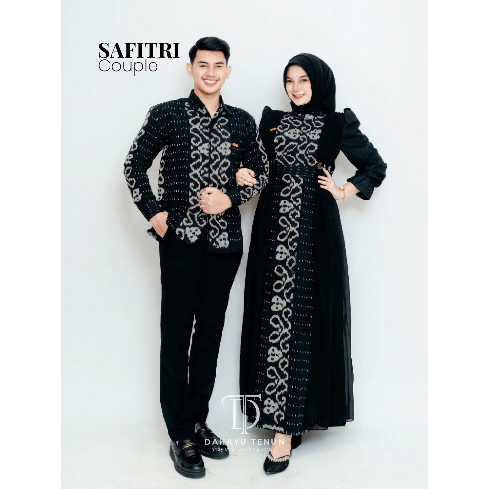 DAHAYU - SAFITRI Set Baju Couple Pasangan Tenun Etnik Kombinasi Ceruty Premium Kondangan Mewah Hitam