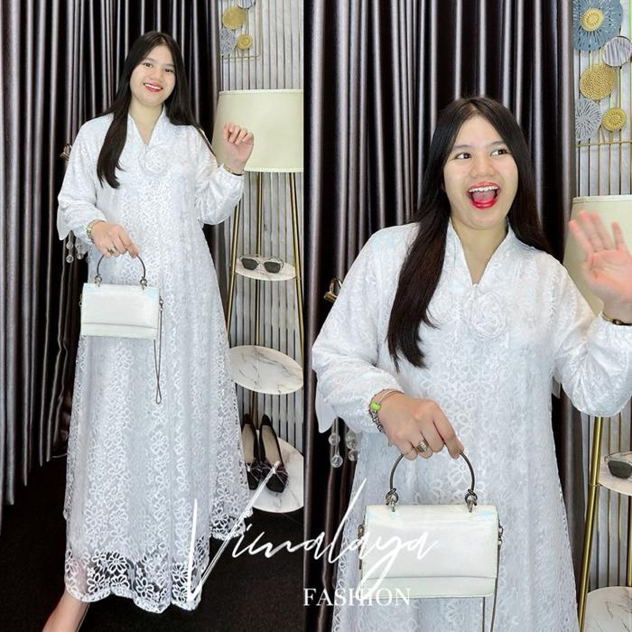 Gamis Brukat Tile Polos Putih Kartini A-Line Baju Muslim Vima 75385 - 76421 - Putih, Standar