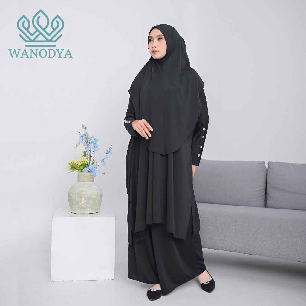 WANODYA - Set Abaya 3in1 Tunik Hijab Bergo Kulot Jersey Premium Muslimah Umroh Haji Busui Dan Wudhu Friendly (3in1 Tunik