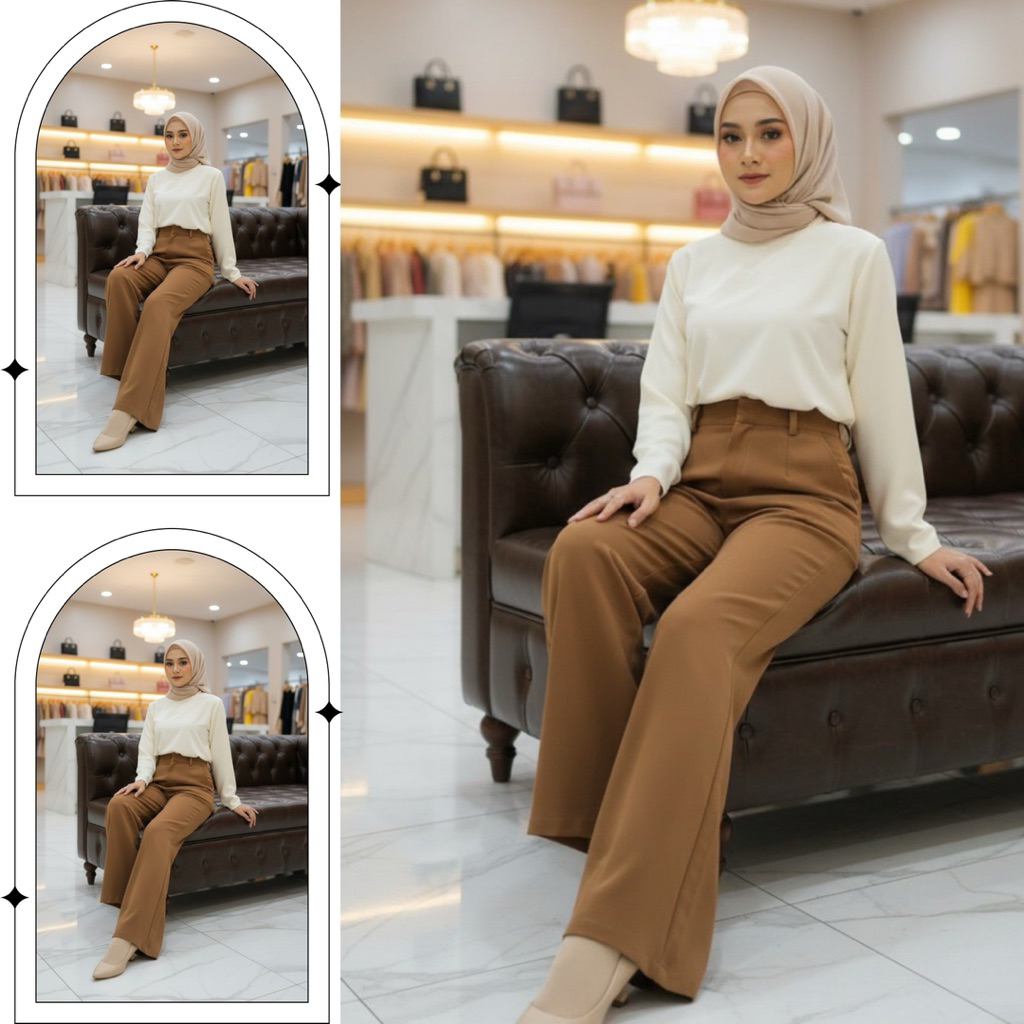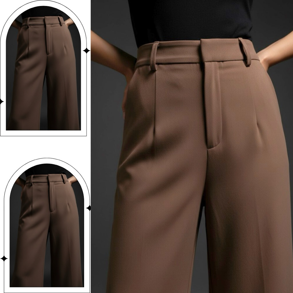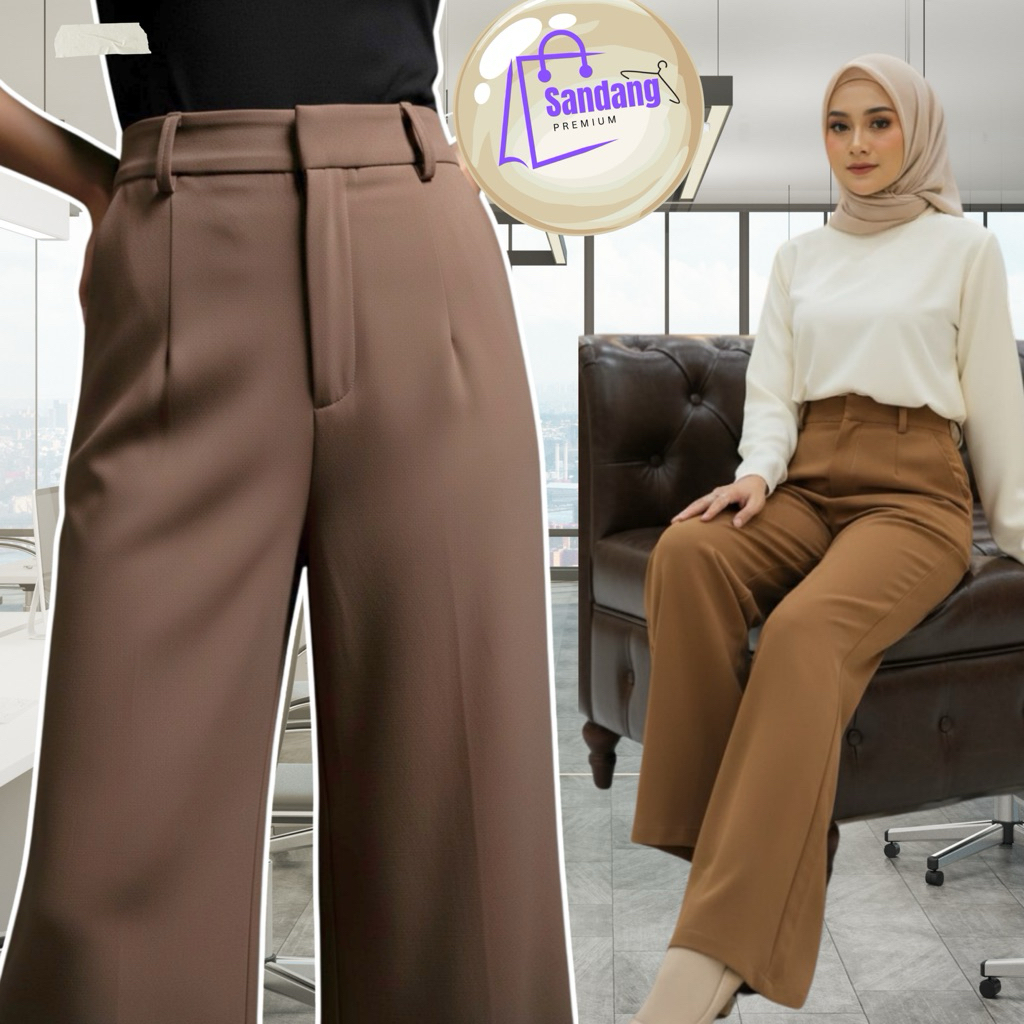 Loose pants trousers wanita-celana anti kusut- dengan karet belakang celana kulot wanita-celana kerja wanita panjng hita