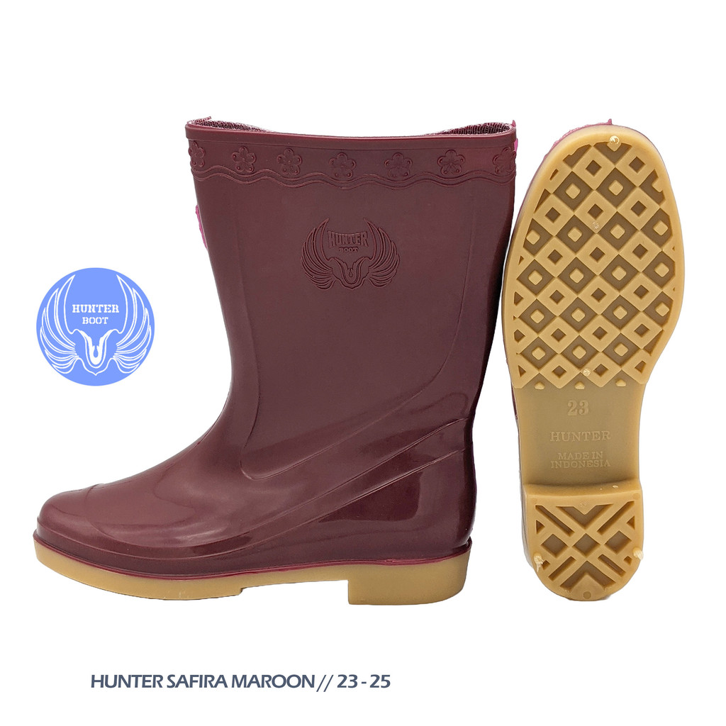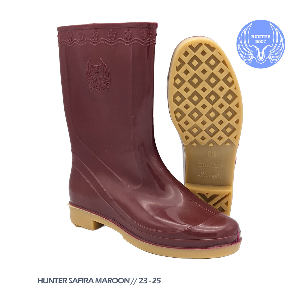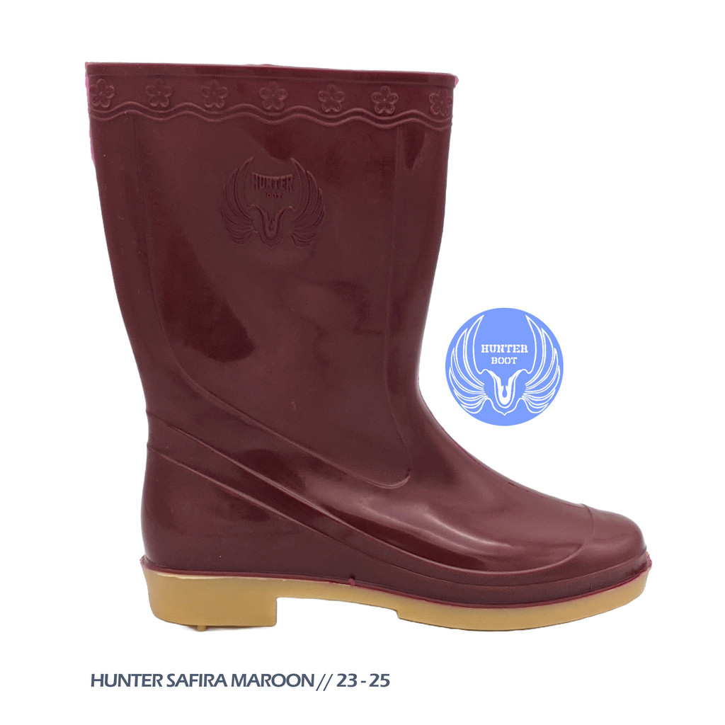 Katzz - Sepatu Boot Pendek HUNTER SAFIRA Maroon Boots Karet Lokal Ringan Anti Slip Air Perkebunan Pertanian [Hunter Safi