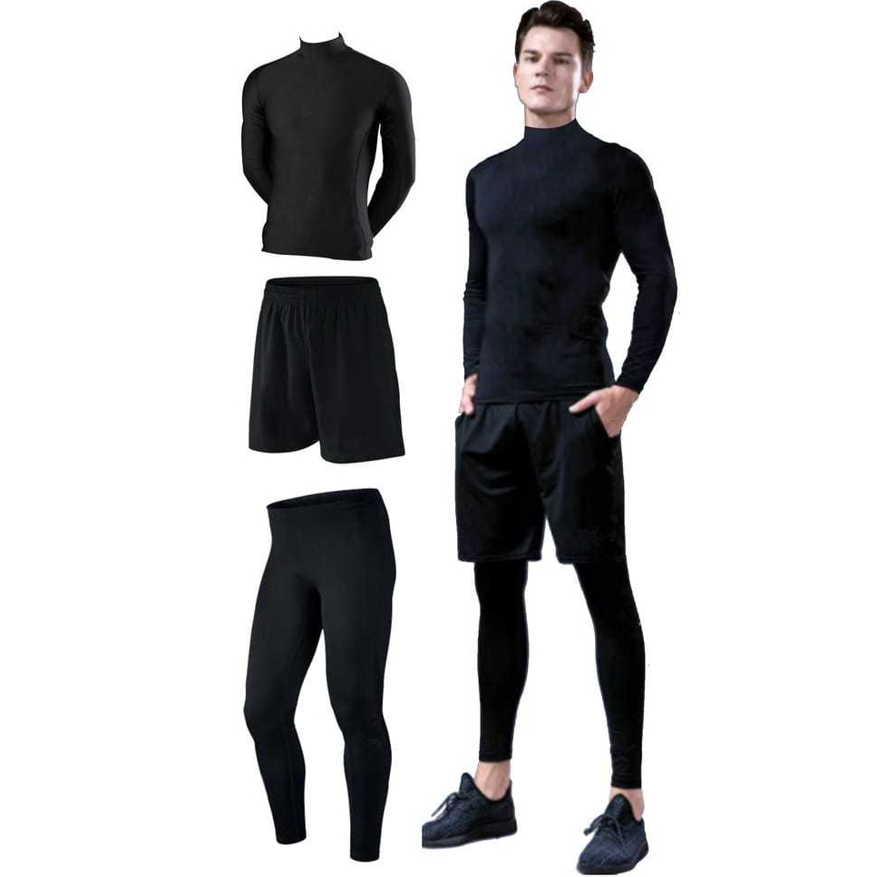 Dextha Sportswear Setelan Baselayer 3 IN 1 Set pakaian Olahraga Pria Sudah Dapat Manset Baju Lengan Panjang + Celana Pen