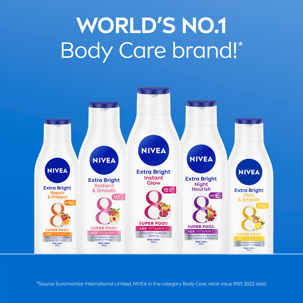 NIVEA Body Lotion Extra Bright Instant Glow SPF15 190ml - Hand body lotion moisturizer mencerahkan kulit kusam bercahaya