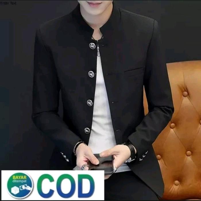 Jasko Mandarin Pria Kancing Motif Kain Nyaman Baju Koko Kantong Panjang Tangan Variasi Muslim Baju Koko & Atasan - Hit