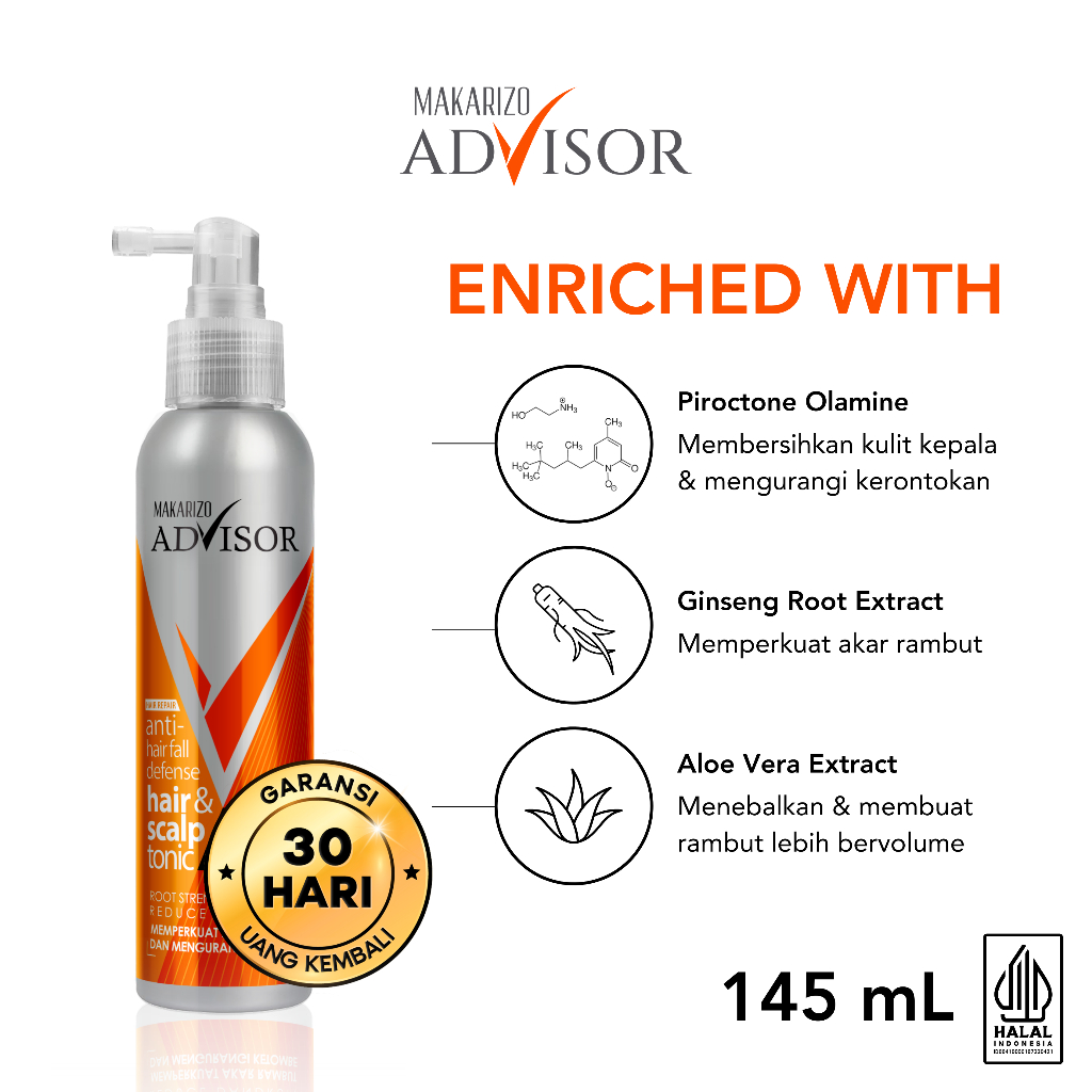 Makarizo Advisor Hair & Scalp Tonic 140 mL & 145mL - 2 in 1 Untuk Rambut Rontok dan Ketombe