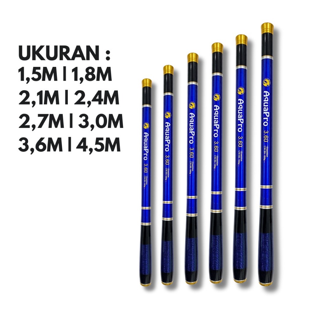 Aquapro - Joran Tegek Aquapro Joran Tegek Ruas Pendek ±40Cm Dengan Ukuran 1.5M - 4.5M Bahan Serat Carbon Medium Action J