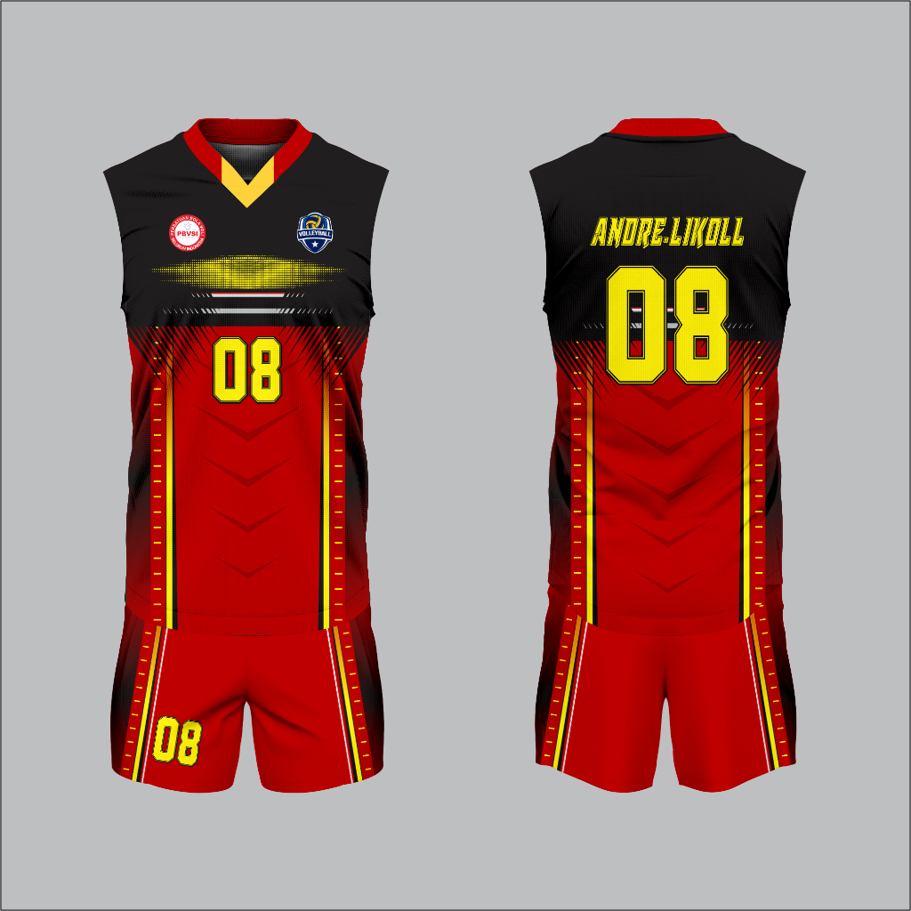 Jersey Voli / Volly Pria Wanita Full Printing Merah Hitam Free Nama Nomor Dan Logo