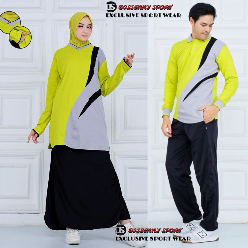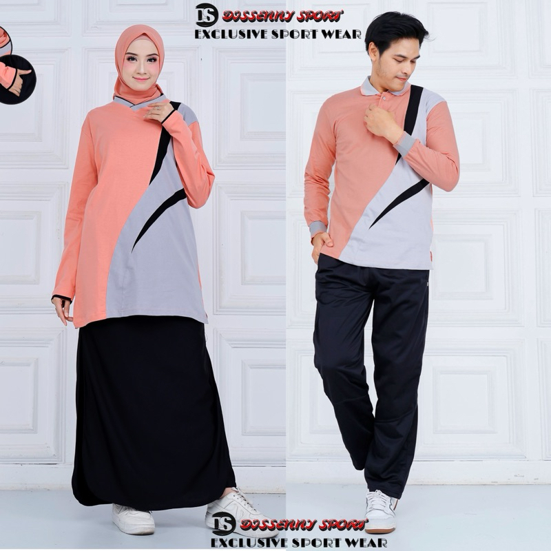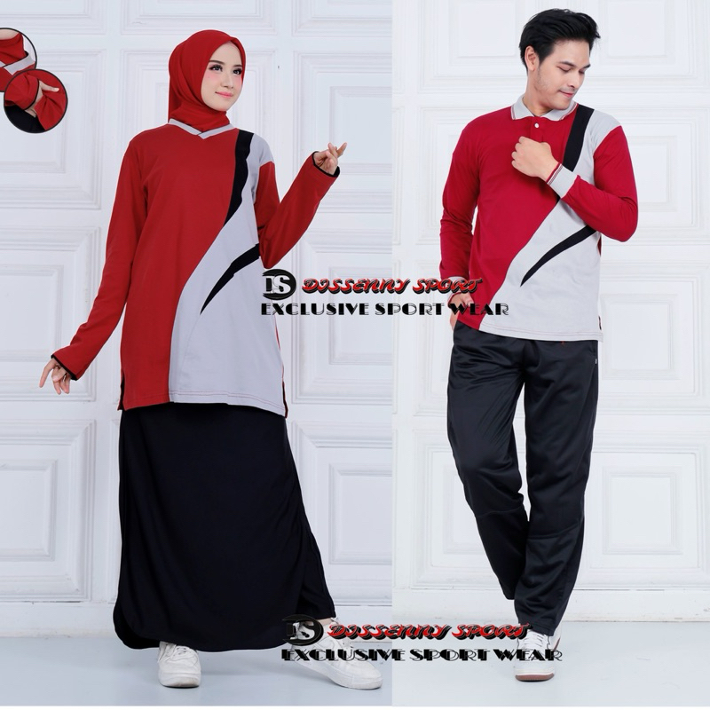 Setelan Olahraga Rocela/Stelan Olahraga muslim pakai rok/setelan kerah laki-laki lengan panjang