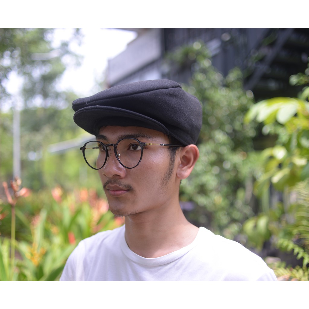 Topi Flat Caps, Pelukis, Newsboy Import Premium Tebal Kancing 1 Blue Navy