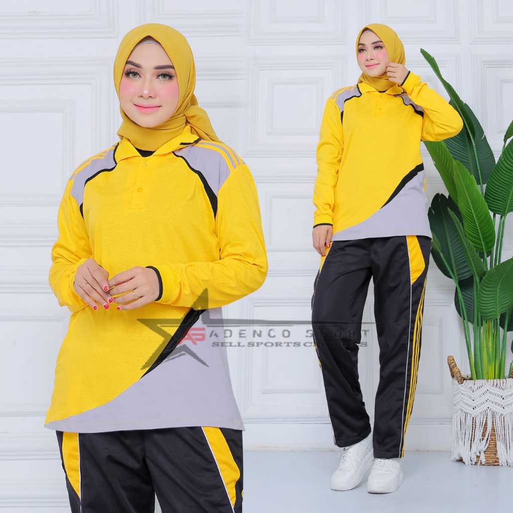 Setelan Baju Olahraga Wanita Lengan Panjang / Seragam Olahraga Lapangan Kelompok Senam