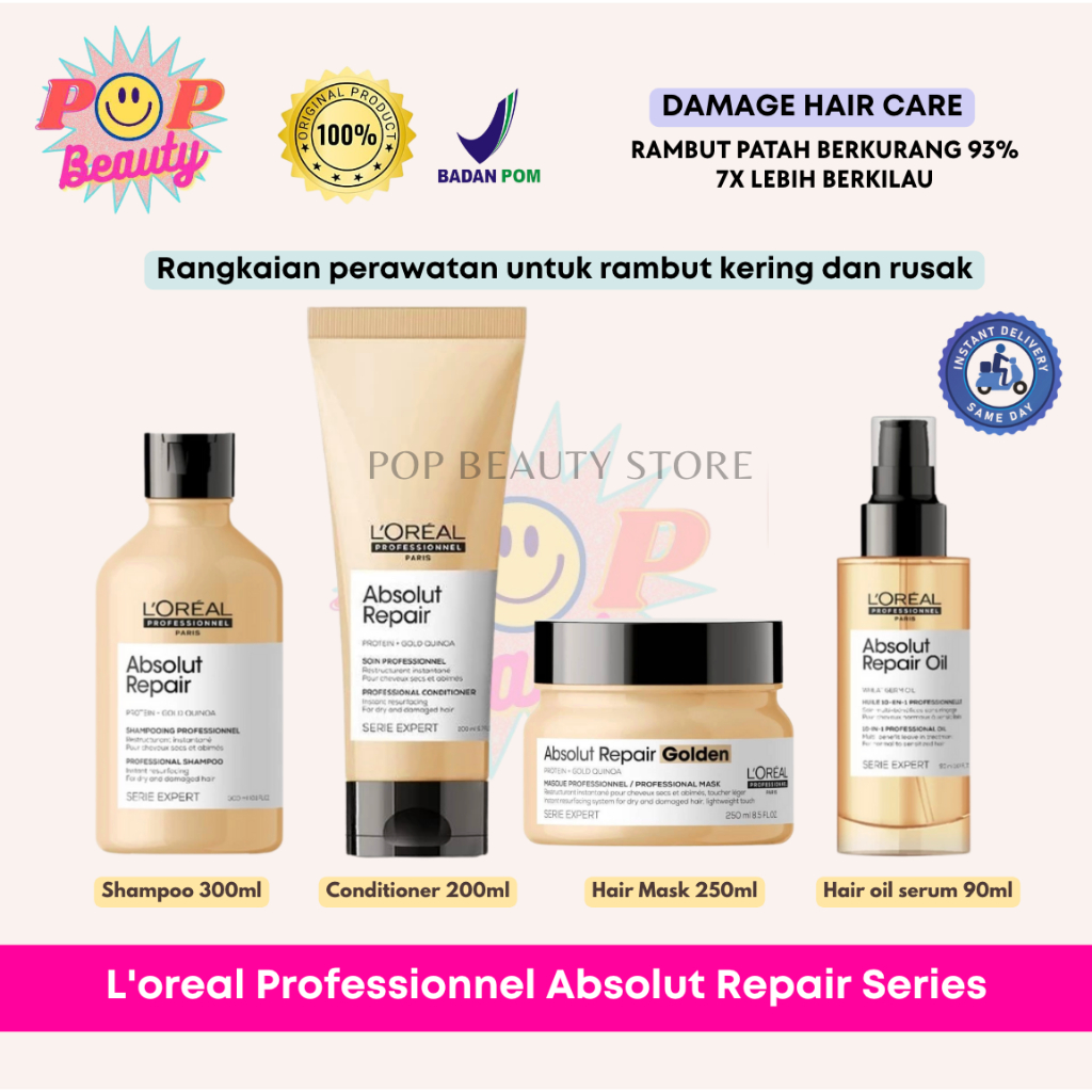 Loreal Serie Expert Absolut Repair Shampoo Conditioner Golden Hair Mask Golden Hair Serum / Perawatan Rambut Rusak / Dam