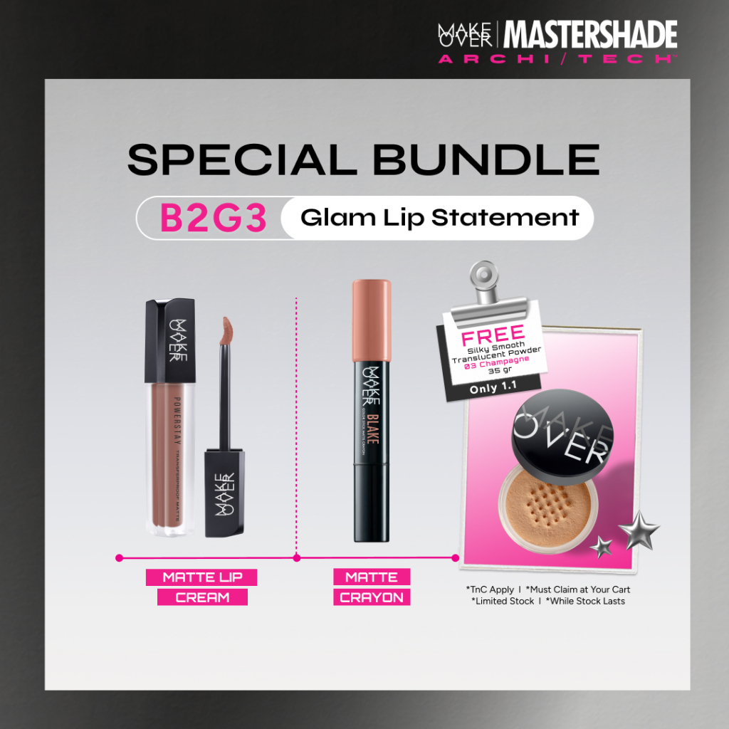 MAKE OVER Glam Lip Statement | Matte Bundle - Transferproof Matte Lip Cream Bundle + Color Stick Matte Crayon - Paket Li