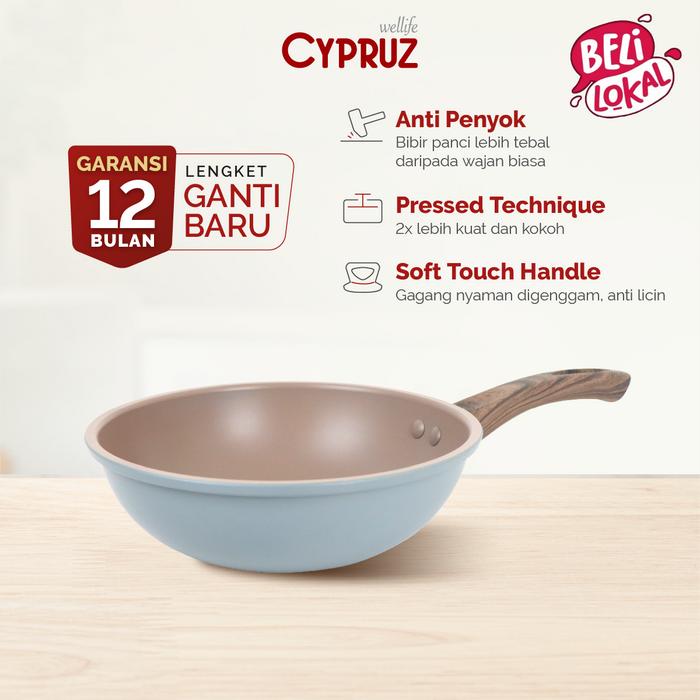[bayar ditempat] Cypruz Wajan Penggorengan Anti Lengket Fry Wok 22 CM Hercules Series Masak Pan Panci Kitchenware Spiral