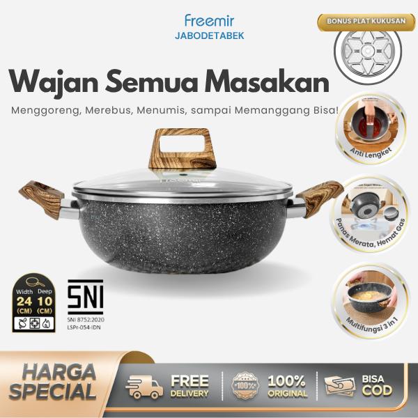 [MEGA SALE] freemir Wajan Anti Lengket 24 cm Panci Sup Anti Lengket Tutup Kaca Kitchenware Serbaguna