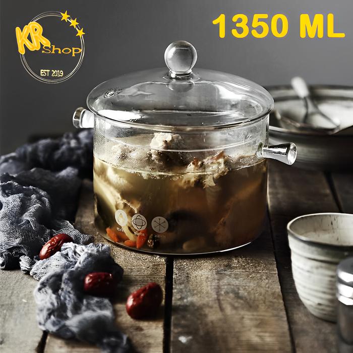 Kartika Panci Kaca Masak Tahan Panas Stewing Soup Pot Transparan High Borosilicate Glass Kitchenware - 1350ML