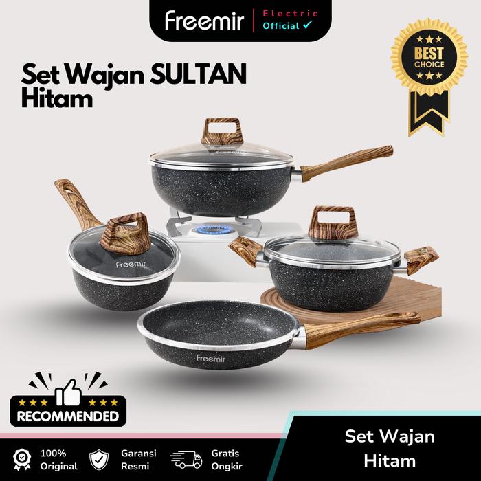 freemir Set 4 Pcs Wajan dan Panci 26/20/20/16 CM Granit Anti Lengket Multifungsi