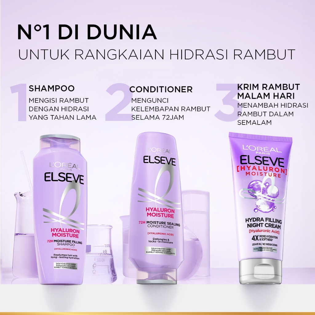 L’Oréal Paris Elseve Hyaluron Moisture Conditioner - Mengandung Hyaluronic Acid 72 Jam Mengunci Hidrasi Rambut - 4X Lebi
