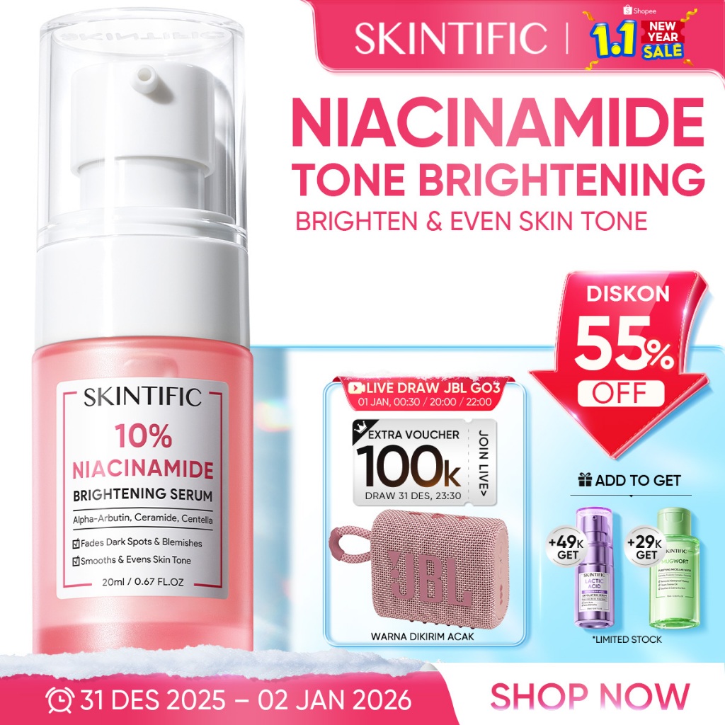 SKINTIFIC - Niacinamide Brightening Serum 50ml | Serum Mencerahkan Dark Spot Tumpas Komedo anti aging Whitening Brighten