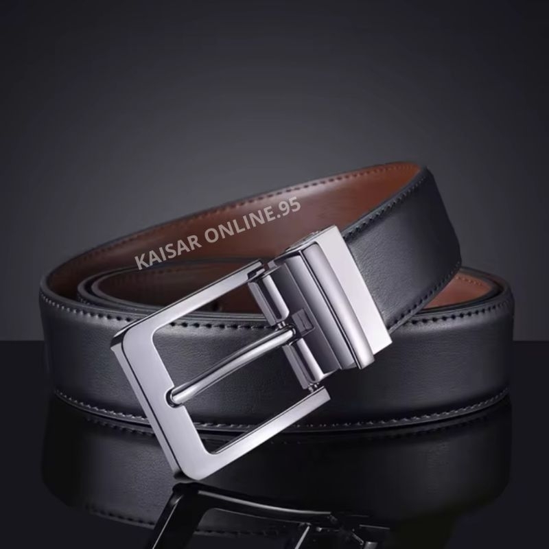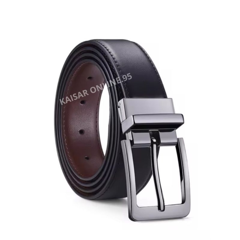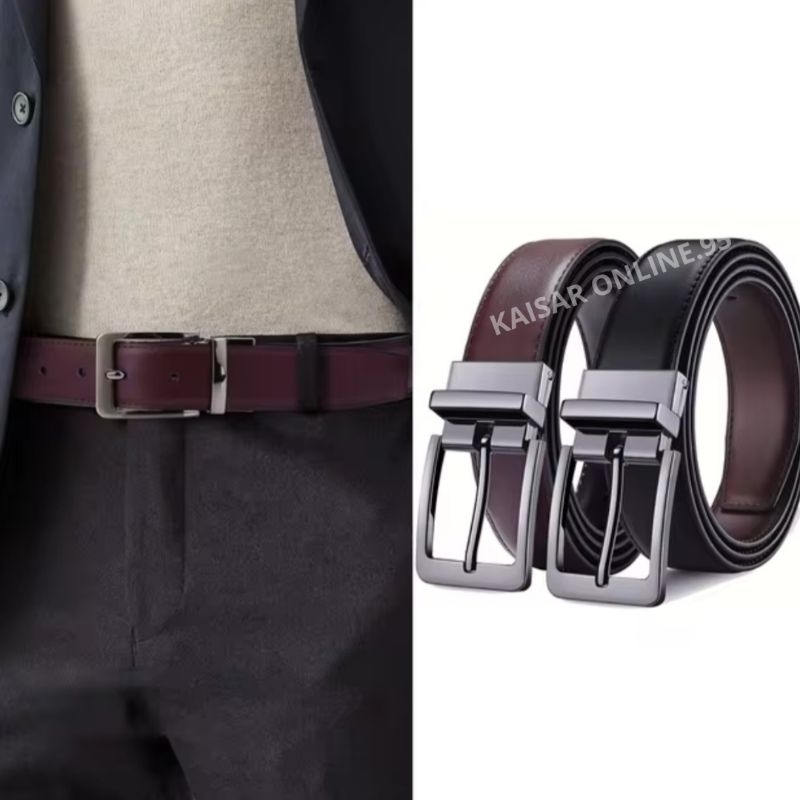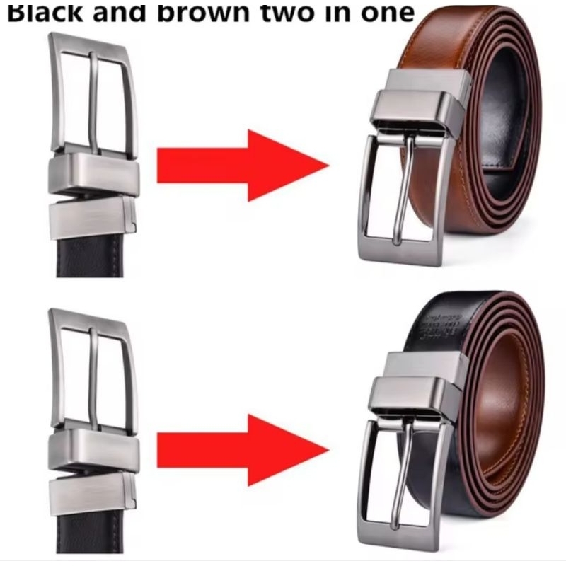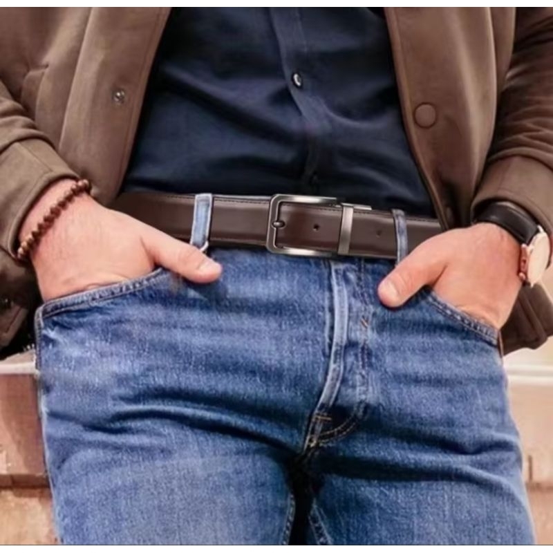 2 Warna Tali-Sabuk Vintage Jeans Ikat Pinggang Bolak Balik 2 Warna Fashion Pria Modis Cantol Kulit
