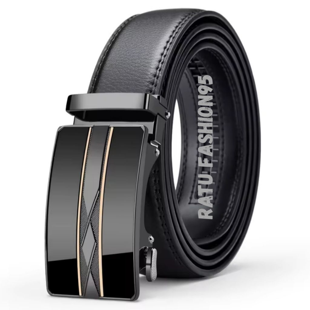 Sabuk Kulit Otomatis Fashion Kasual Kantoran Kerja Pria Mewah 125Cm Gesper Mens