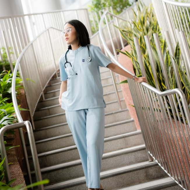 Baju Jaga MANDARIN SS - LIGHT BLUE Scrubs Theatre Blues Empirical Lengan Pendek