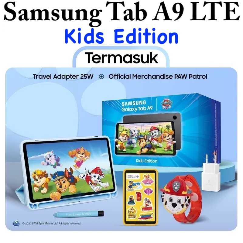 Samsung Galaxy Tab A9 Kids Edition Termasuk Travel Adapter 25W Kid Tablet Anak Paw Patrol