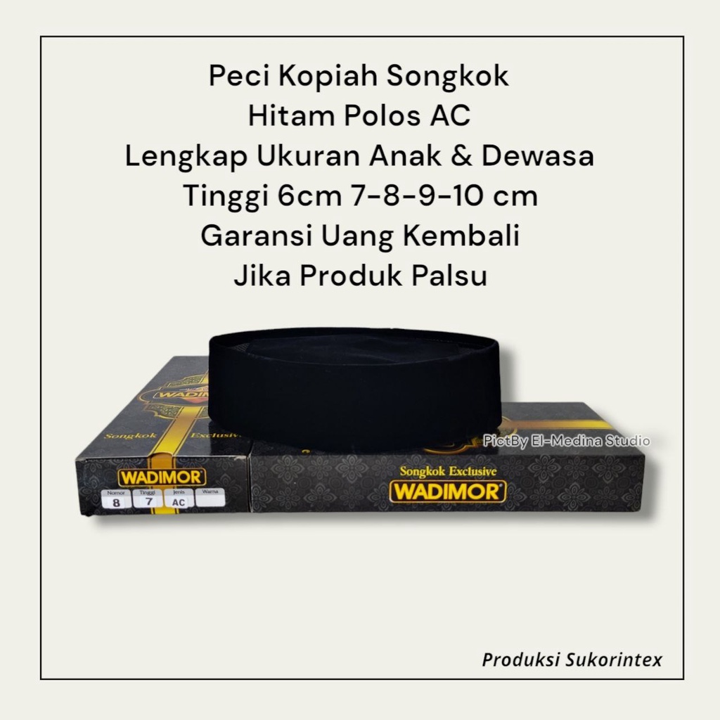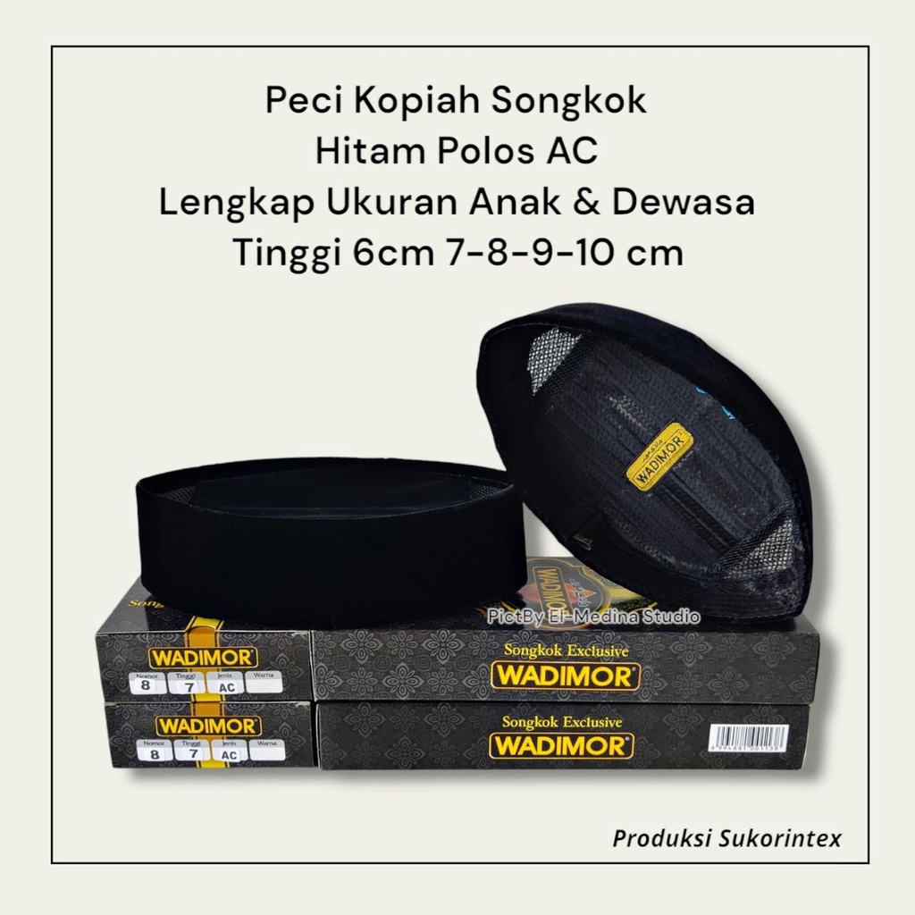 Songkok Wadimor Hitam Polos Ac Tinggi 6 7 8 9 10 Cm Original Wadimor Halus Tebal